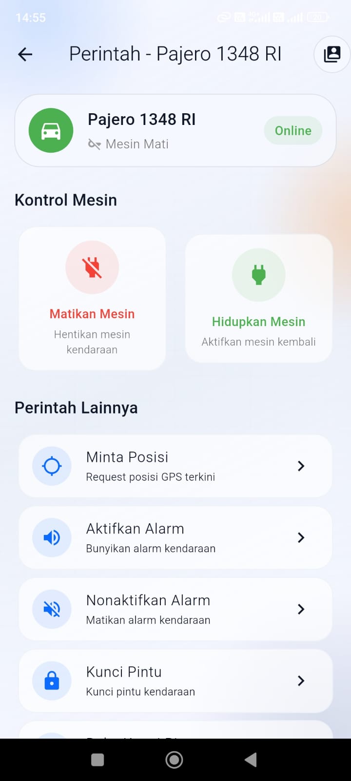- Fitur: Alarm Device Stop & Device Moving — toggle aktif/nonaktif di halaman Pengaturan Alarm.